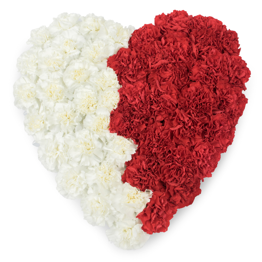 Illuminate any occasion with our Radiant Carnations Heart bouquet, designed with care by Handy Flowers. This vibrant arrangement combines white and red carnations in a stunning heart shape, making it an ideal choice for expressing sympathy or as a heartfelt gift.